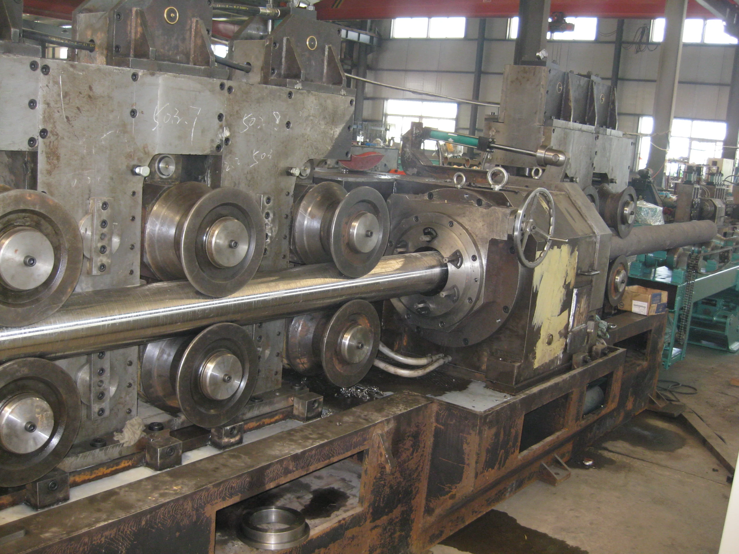 Processamento como rack de carregamento→pareto automático de carregamento→ mesa de rolo de carregamento → dispositivo de alimentação → dispositivo guia frontal→main dispositivo de fuso →mneuto dispositivo guia →clamping dispositivo de transporte→desor (extração) dispositivo de retirada (extração) dispositivo de retirada de carga→ mesa de rolo de carga → braço de chute automático pneumático→arte de carga (dispositivo de coleta)